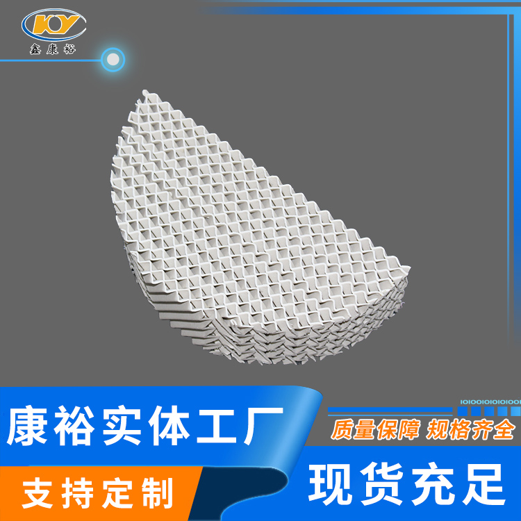 陶瓷波紋填料是一種新型規(guī)整填料,它是由許多具有相同幾何形狀的填料單元體組成。由于陶瓷的結(jié)構(gòu),具有良好的親水性能,其表面可形成極薄的液膜的湍動(dòng)及氣流的傾斜曲折通道能氣流但又不阻擋氣流使陶瓷填料能與金屬填料相匹敵,而其耐腐蝕、耐高溫性能金屬填料卻無法相比。表面結(jié)構(gòu)有良好的濕潤性能,能使液體加快流動(dòng)、使填料滯液量降至低。從而降低了過熱、聚合和結(jié)焦的機(jī)會。