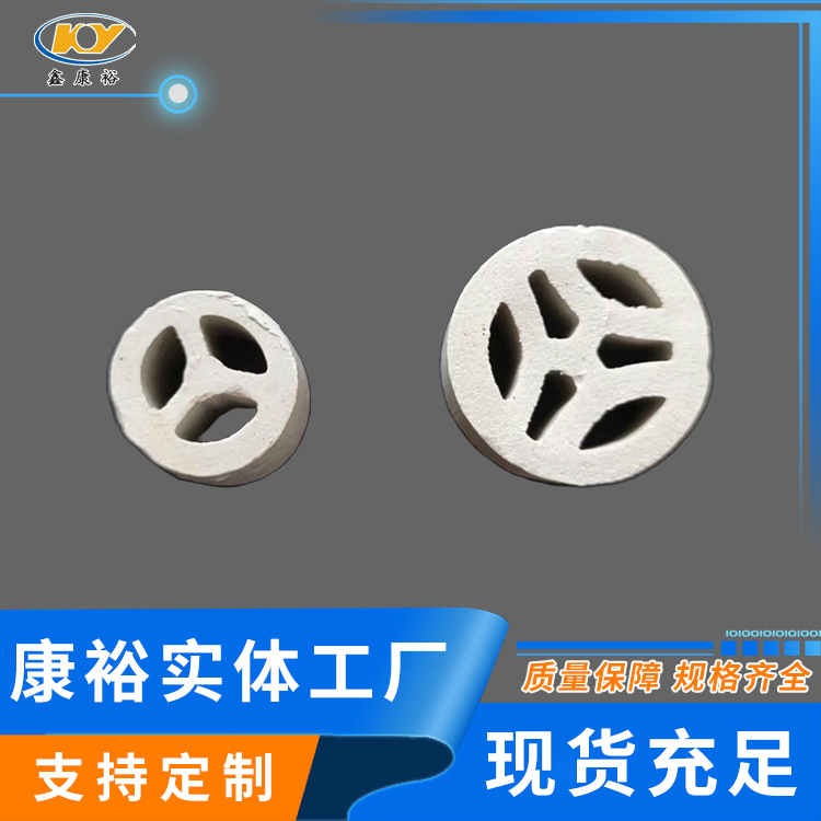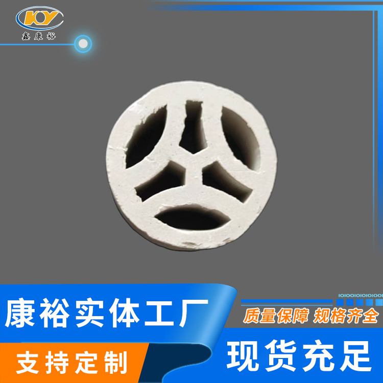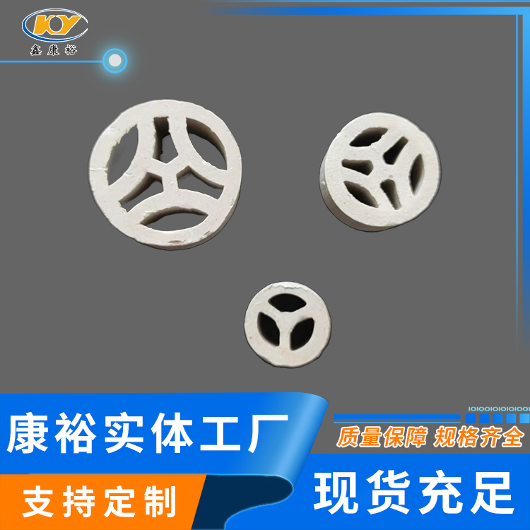 陶瓷三丫環(huán)因其優(yōu)異的工藝加工條件,如原料優(yōu)選,真空擠壓成型以及嚴格控制燒結(jié)工藝中的火焰氣氛,使得陶瓷三丫環(huán)具有瓷質(zhì)致密,色澤均勻,機械強度高,耐壓力沖擊,抗熱震性能好,耐搬運不破損的優(yōu)點。同時陶瓷三丫環(huán)結(jié)構(gòu)空間性能好,床層使用通氣量大、比表面大、氣液分布均勻、阻力小、壓降低、強度高、氣液傳質(zhì)性能比一般填料好。