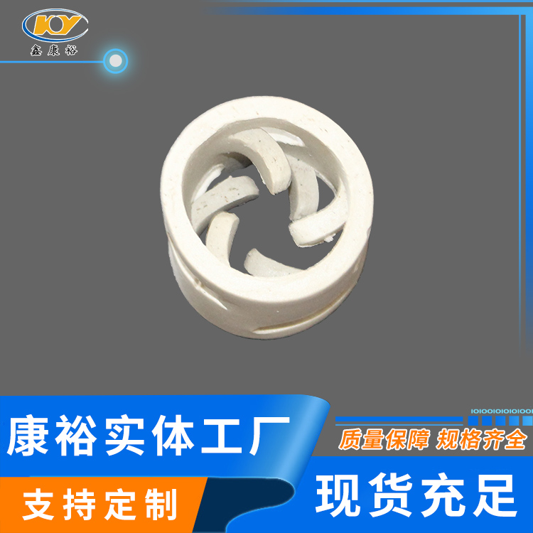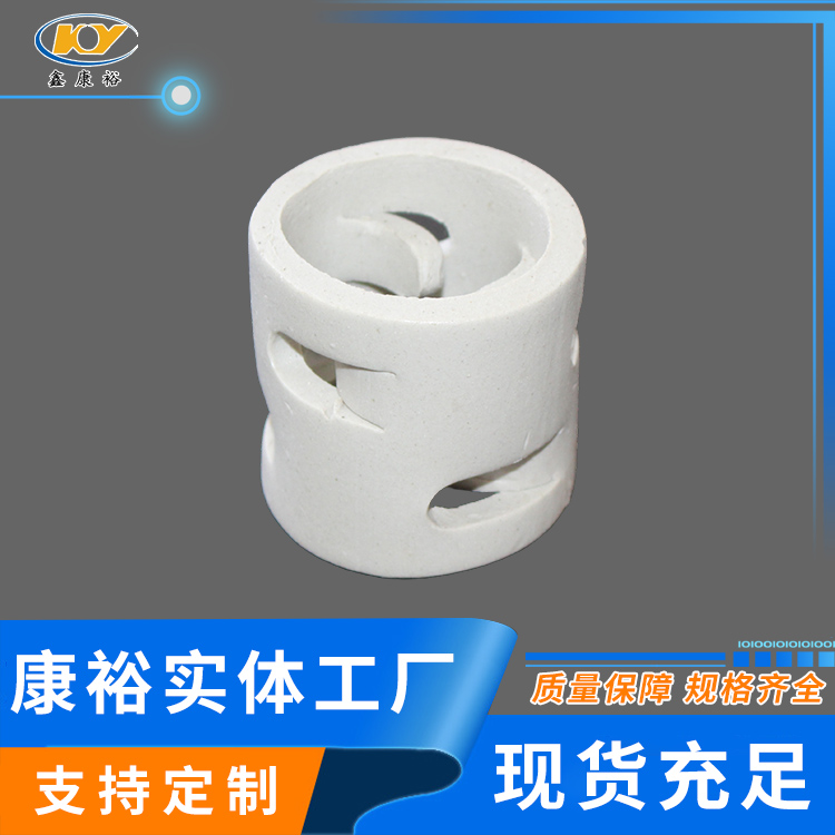 康裕陶瓷鮑爾環(huán)填料是一種高徑相等的開孔環(huán)型填料,每層窗孔有5個(gè)舌葉,每個(gè)舌葉內(nèi)彎指向環(huán)心,上下兩層窗孔的位置相反錯(cuò)開,一般開孔面積約占環(huán)壁總面積的30%左右。